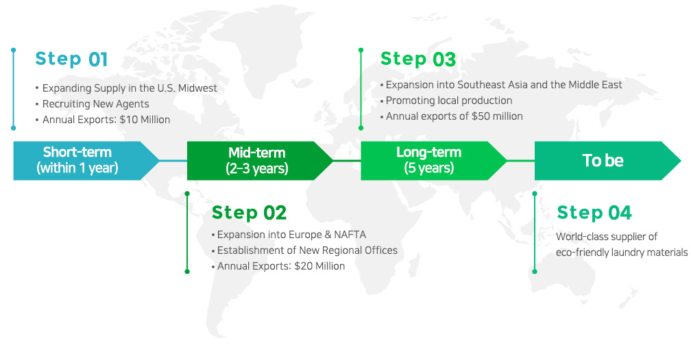 Based on our export foundation in North America (East and West), we plan to pioneer new markets and establish local production systems. Building on this, we aim to further secure sales and cost competitiveness, solidifying our position as the world's premier supplier of eco-friendly laundry materials in both name and reality.