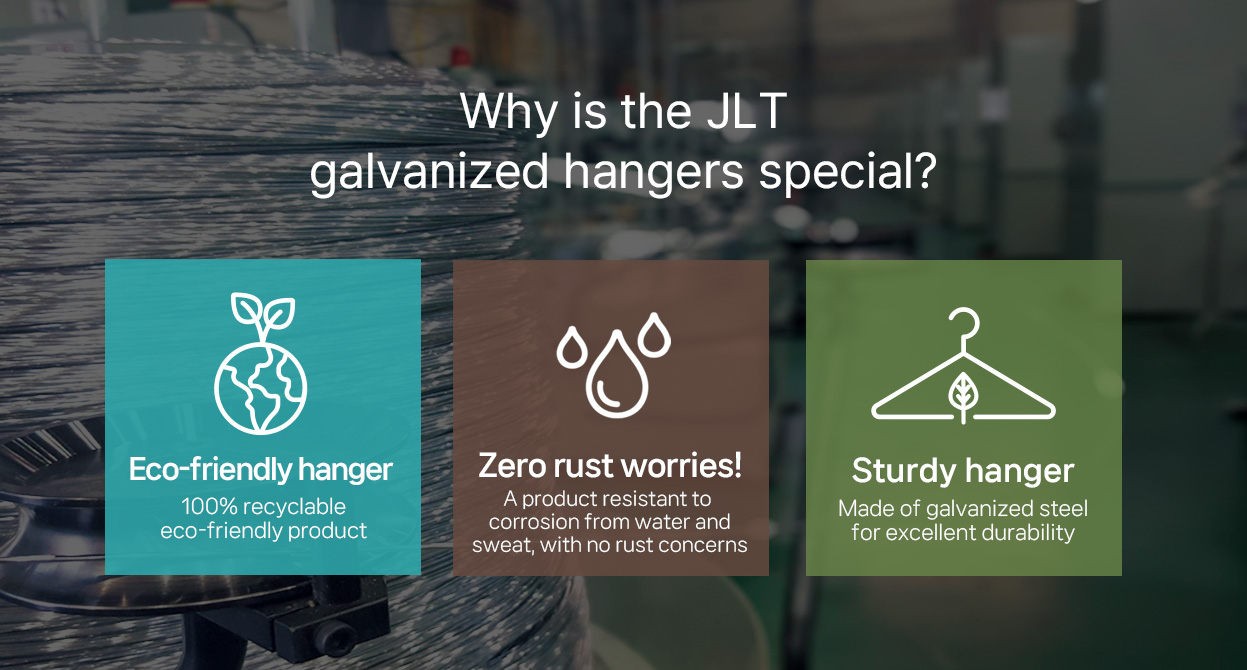 Our galvanized coat hangers are manufactured directly at our factory in Miryang City using our own state-of-the-art automated equipment. As demonstrated by our overseas export track record spanning over a decade, we consistently meet customer expectations with the highest quality. Furthermore, unlike powder-coated or vinyl-coated products, our galvanized coat hangers are 100% recyclable, positioning us to meet upcoming environmental regulations.